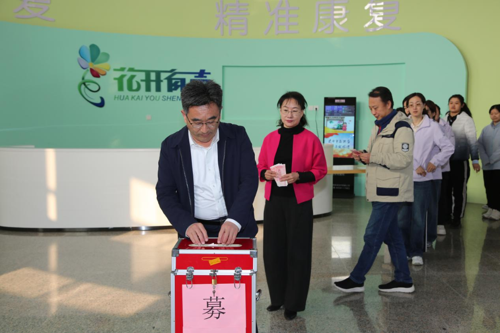 3月13日上午,山东省听力语言康复中心组织全体教职员工及在训儿童家长,在一楼大厅开展爱心捐款活动,为一名患病听障儿童送去温暖与希望。