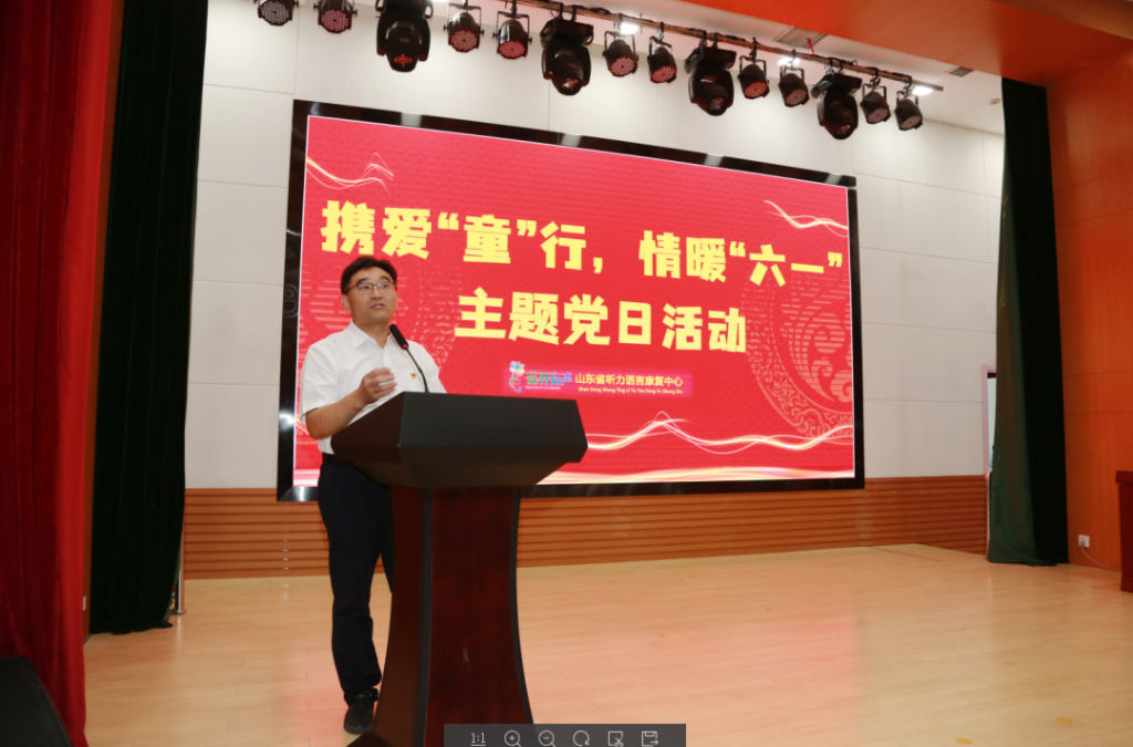 活动最后,党员同志们在听语讲堂观看中心纪录片,被中心开展的各项工作所打动,流下了感动的泪水,并自发为残疾人康复工作送上掌声。随后,大家开展座谈交流。省听力语言康复中心党支部书记、主任李玉柱同志代表中心向一直以来关心支持山东残疾人事业发展的省委党校表示感谢!向奋斗在全省各市、各行业的中青一班学员们的到来表示热烈欢迎!二十大报告强调要“完善残疾人社会保障制度和关爱服务体系,促进残疾人事业全面发展”,这体现了党中央高度重视保障和改善民生,重视与关怀残疾人等困难群体。大家在“六一”儿童节到来之际前来开展活动,体现了领导干部们的责任和担当,这次活动虽然是短暂有限的陪伴,展现的确是无限的爱心。
