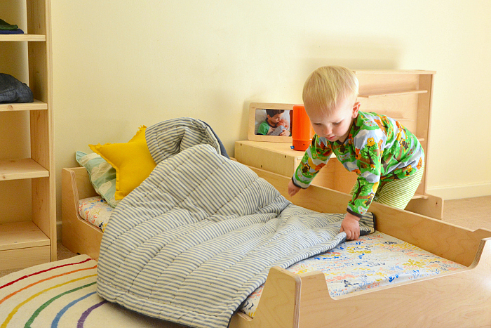 我还放了几件适合这个年龄段孩子的玩具。这些玩具很适合家庭蒙台梭利教育,但不是专门的蒙氏教具。