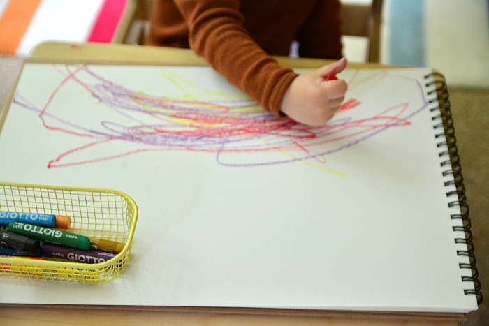我们在介绍蒙氏活动的时候,通常会先给孩子进行演示(示范如何使用),然后将其放到矮架上。这样孩子就可以在想操作的时候取下来操作了。
