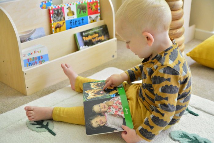 阅读基于现实的书籍帮助孩子了解周围世界。放置一个低矮的书架,朝前摆放,方便孩子们看到、取下、放回书本。